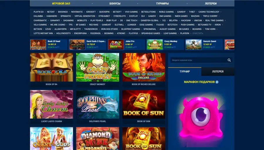 B3W, Betsoft, Igrosoft, MegaJack, Microgaming, NetEnt, Novomatic